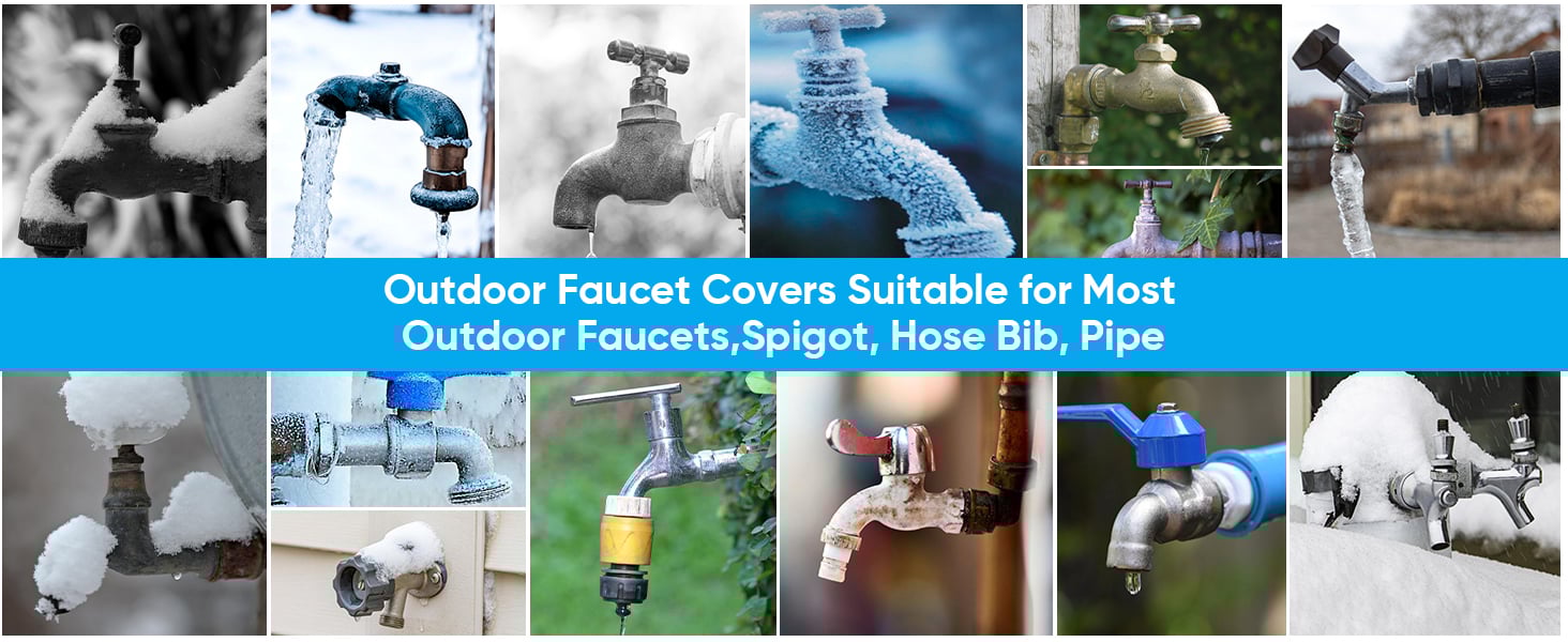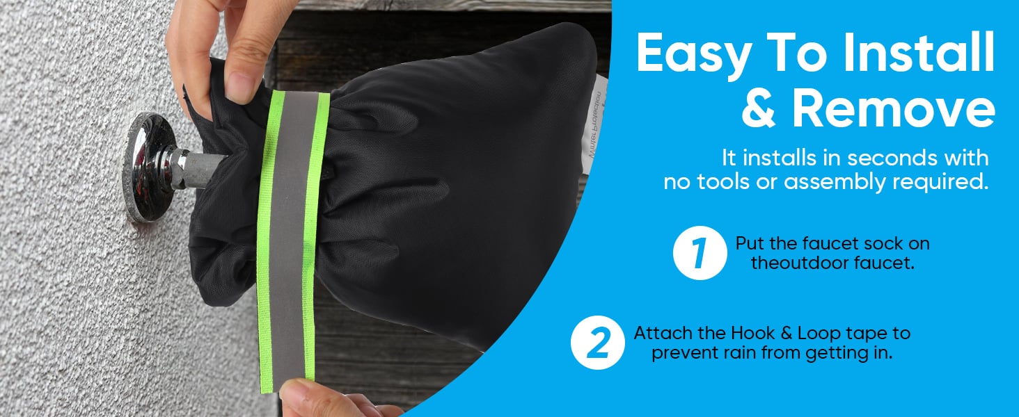 ❄【Easy To Install and Remove】-- Spicket cover outside No more tools and screws.ust slide covers onto the faucet; fasten it with hook-and-loop straps & cord. Measier to use than some foam covers or hook & loop tape styles.